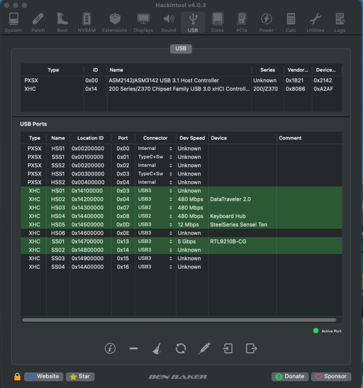 Update:(la notte porta consiglio): praticamente il mio cervello ormai st cominciando a perdere colpi. Stamattina mi son ricordato il fatto del WhateverGreen.kext, l'ho disattivato nella pendrive di boot, e come per magia il sistema è ripartito. Dopo alcuni avvi di prova per cercare di far andare, la mia PENDRIVE USB per internet non ne vuole sapere. Ho scaricato il nuovo nuovo debug kit postato da @fabiosun, poi rifatto nuovamente la patch ma niente è cambiato. Mi sono accorto di questa cosa nelle porte USB: esiste un Kext per farlo andare? Vorrei capire come poter nuovamente utilizzare sto wifi. Grazie. ps Non ho ancora fatto lo screen del sistema aggiornato che metterò a breve.