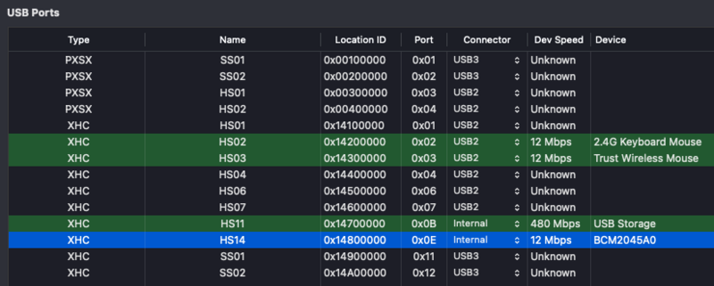Non c e' li la porta BMC.... Che va mappata come internal ( 255 ) e se non ricordo male in un plist fabio l aveva corretta era visibile , cambiata da usb2 a internal