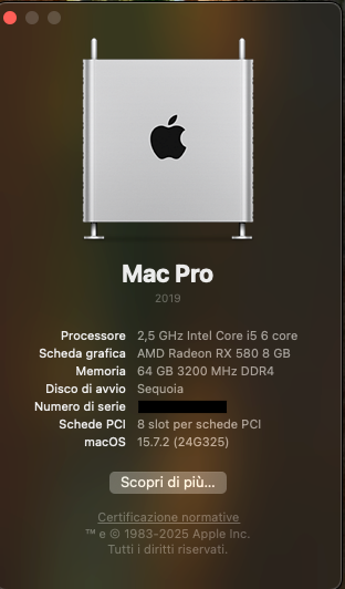 Alle 00:34 ce l'ho fatta....🥵 * devo però dire che NON mi si è installato con la usb, ma con aggiornamento da Ventura a Tahoe, in quanto avevo visto che mi chiedeva l'aggiornamento scaricando solo 8 gb e qualcosa, non pensavo funzionasse ma l'ho fatto e inserendo a metà installazione il file di Fabio: WhateverGreen.kext.zip( che avevo letto tempo fa ma a me non era servito, in quanto installavo su rx 6600 e su rx5700xt, ma stavolta con la rx 580 è servito ...e puff... fine installazione, poi problema con il filevault, ma risolto grazie al file di Anto: apfs_aligned.efi.zip quindi grazie a tutti e due.👍