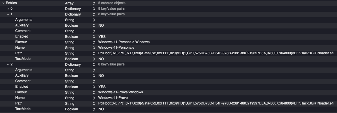 2. Si se vuoi puoi riattivare SIP nuovamente in ( plist ) nvram -> 7C436110-AB2A-4BBB-A880-FE41995C9F82 -> csr-active-config invece di 03080000 -> 00000000 Riavvia , resetta Nvram https://macos86.it/topic/4665-opencore-aggiungere-custom-entries-via-shell/ 🤷‍♂️