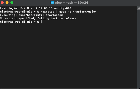 nel terminale kextstat | grep -E "AppleFWAudio"
