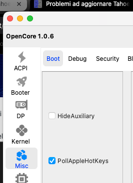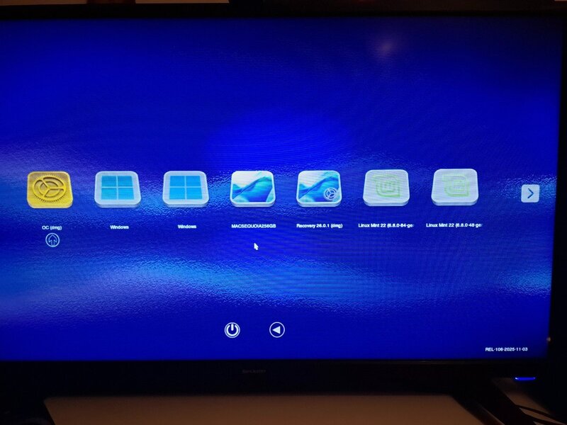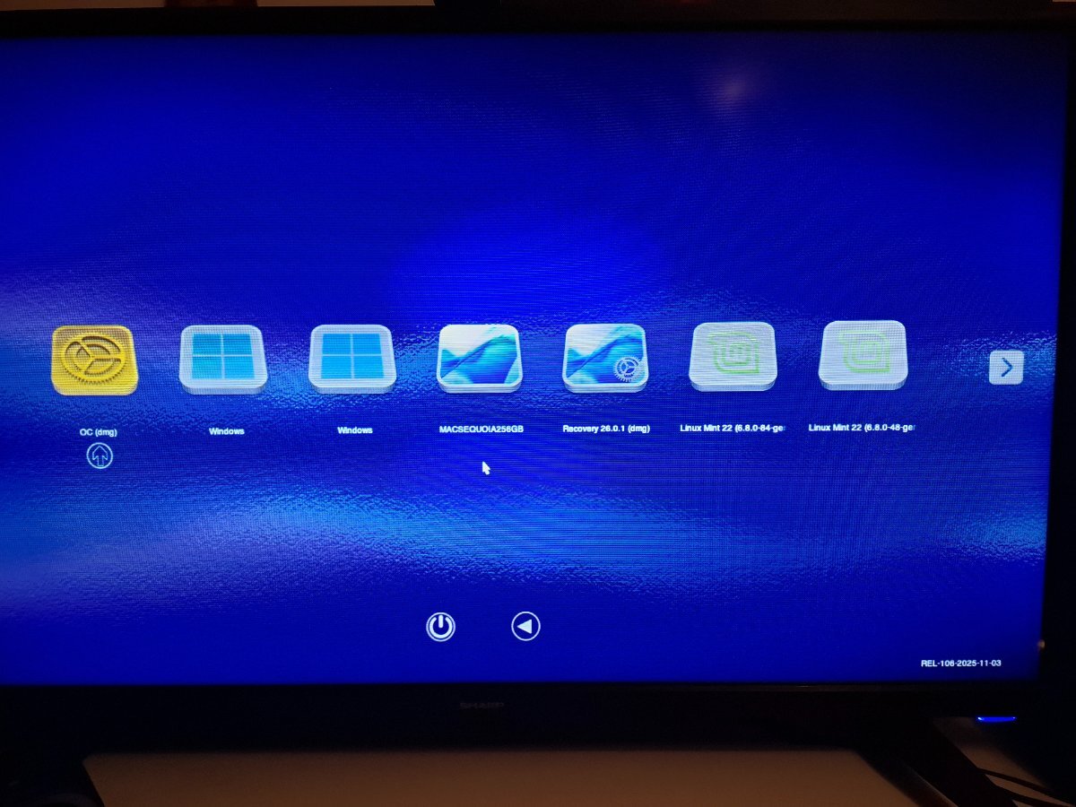 Ciao Anto, avviato OC dmg da questo risultato. Ho cliccato per prova su macossequoia e si è avviato il sistema. dopo avvio con password è apparso il desktop il mouse con filo funziona quindi posso operare con il cordless no, con sequoia funzionava, ho un tecknet m003.il sistema si è aggiornato a tahoe. "COLPO DI C.....non so" Copio la efi usb sul disco??? devo fare altre modifiche o le hai fatte tu con la nuova efi???