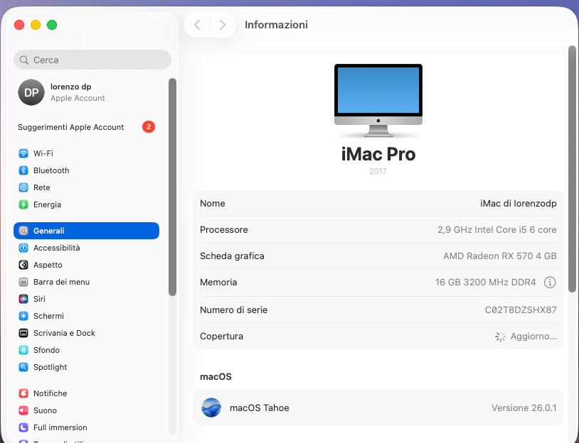 Ma a tal proposito , invece di perdere ore reinstallando da Recovery ( c è sempre l installer completo ) e ripritinare TM Perche' non fare , una volta installato l OS Tahoe , Sequoia o Topolino , installate le app etc. un immaggine di Sistema ( visto che usate anche Win , ma anche da una live funziona uguale ) ad esempio uso R-DRIVE Image 5 min per crearla , 3 min per ripristinarla allo stato iniziale con tutto , app s , Account etc Copia 1:1 , cosi posso incasinare 🤣 provare il sistema come voglio , sapendo di poter tornare indietro quando qualcosa va storto Il consiglio e' sempre di usare una partizione / disco dedicato a parte , prima di provare un nuovo OS " Ma se vuole conservarsi questa installazione di Tahoe per una eventuale botta di fortuna " Non si tratta di fortuna il suo HW lo supporta , e a mio parere non ha neanche il FV attivato e' arrivato a Desktop ... non avrebbe effetuato neanche l accesso con PSWD ... avrebbe ricevuto il pop up che e' errata ovviamente servono i requisiti per Tahoe : Usb , Weg ... ( cosa che ha lui ha funzionato quello ufficiale ) una tastiera / mouse non PS2 ( da dimenticare con Tahoe ) ho una semplice tastiera / mouse usb-wireless ( magari non bluetooth ... servirebbe il kext )