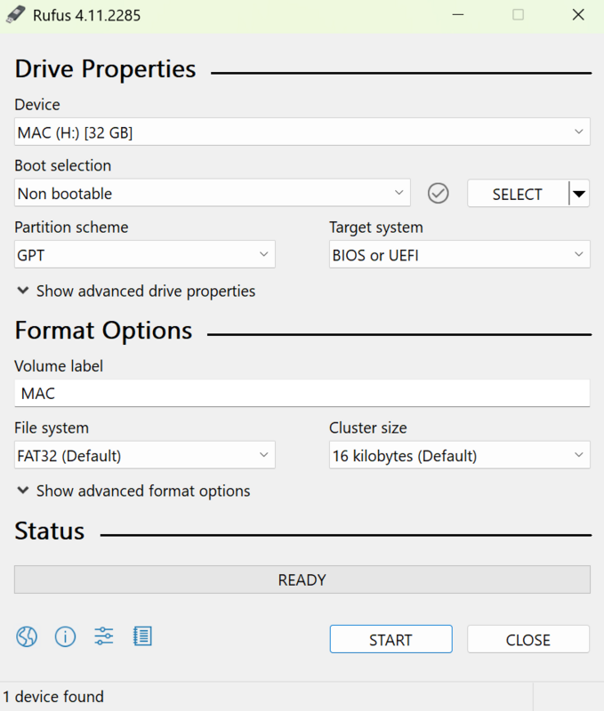 So on the 4090 i see the bios and press F4 to boot from UEFI USB, and i see the bootloader showing Mac (usb drive) and my Windows installation. I then select Mac and both monitors go black i have left it for an hour while i did a few errands, and when I came back still the same black screens I formatted the USB as FAT32 and GPT using Rufus, like the below screenshot