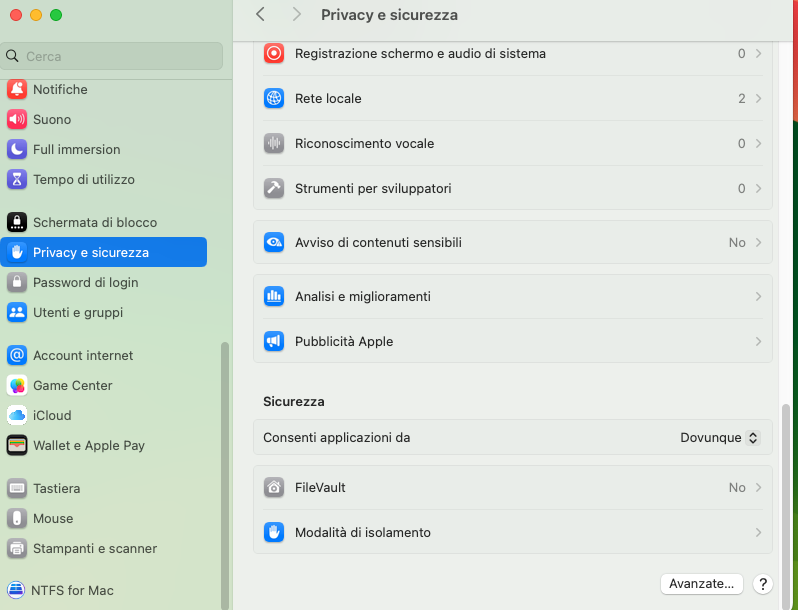 Ok, provo, ma devo estrapolarlo anch'io? Cosa hai usato per farlo? Ora in privacy e sicurezza sono messo così