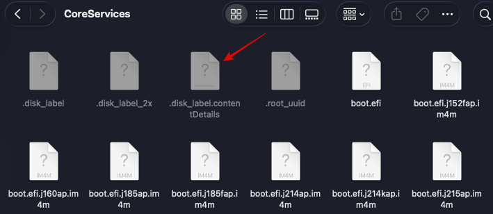 3. Apri il finder , sopra la barra " vai " -> alla cartella , incolla questo ( abilita i file nascosti ) /System/Volumes/Preboot/728DE101-C7CB-4B4C-87EF-58ACDFA55C33/System/Library/CoreServices/.disk_label.contentDetails