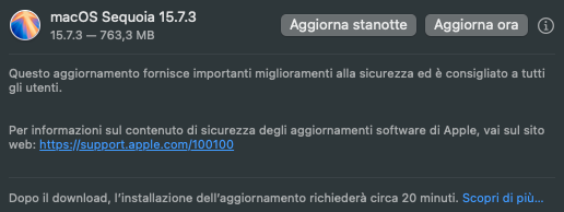 12. C'è un motivo per cui non mi vede l'aggiornamento 15.7.2, rispetto al passato ho messo solo macmini invece di iMac.