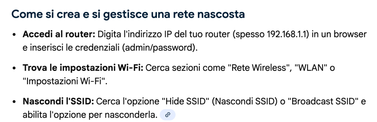 devi entrare nel modem (a seconda di quello che hai) e poi vedere se hai messo la spunta su Nascondi SSID