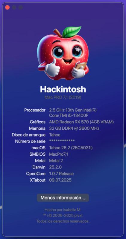6. il kext USBMap e' modificato per tahoe? qui non lo hai allegato, dipende da quanto l'hai fatta 🙂