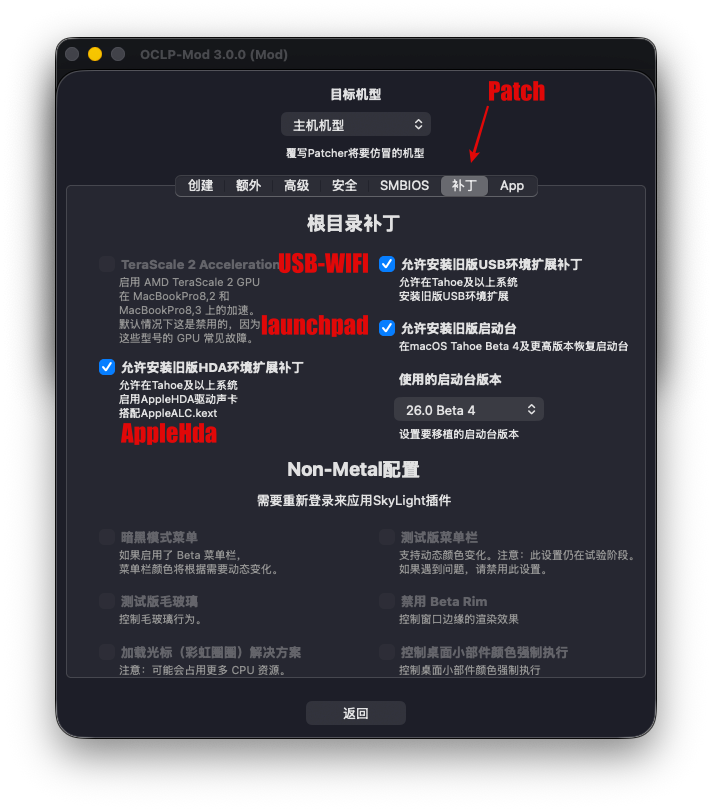 Completo , non basta cambiare solo il numero da iMac 19,2 a Mac mini serve generare nuovo seriale , uuid ... etc Se la versione 6 allora dovrebbe andare Tanto hai la RDR 🤦 Fai il revert con MyKextInstaller Scarica OCLP-MOD ( vanno selezionate le Patch nel settings AppleHda, USB e se vuoi pure il " vecchio" Launchpad ... 3 in 1 🙂 ) Aggiungi il kext Amfi Sip 03080000