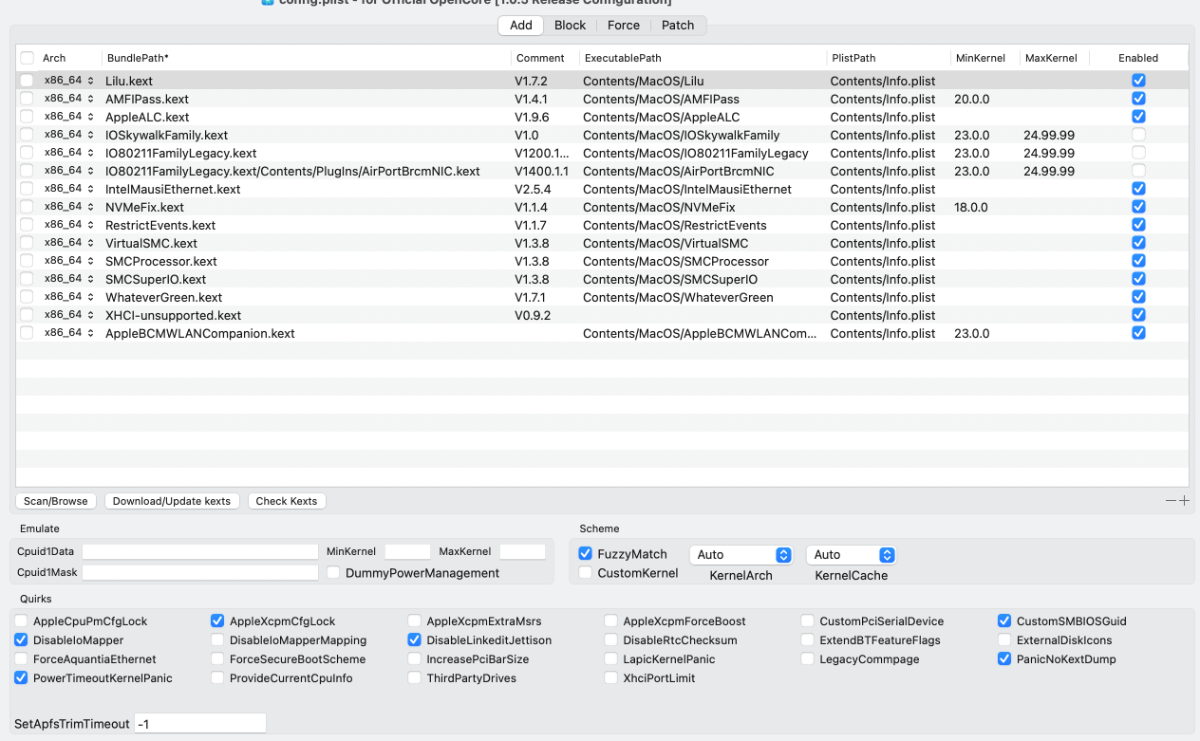 Ah ma non basta la procedura come per gli altri Sistemi, i due kext nella efi e via, no tutto sto pastrocchio è orribile 🙂