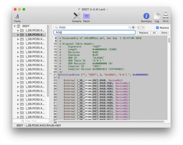 Non decompilare ... usa https://bitbucket.org/RehabMan/os-x-maciasl-patchmatic/downloads/RehabMan-MaciASL-2017-0117.zip">MaciASL aggiornato selezionando acpi 6.1 nelle preferenze vai subito ad aprire il corretto ssdt1 point