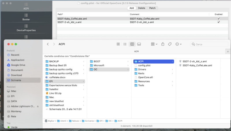 Grazie @Rosarioxx ho dovuto adattarlo un po, ma se tu lo usi cosi devi controllare la parte del Config dove dichiari gli ACPI e anche la cartella manca il punto prima dell'estensione aml, per il resto ho dovuto mettere qualcosina ma ad essere sincero non molto lo lasciato molto spoglio ma riconosce sembra quasi tutto, il mio ad esempio non il bluetooth integrato e non è intel ma al di là di questo Grazie per la gentilezza e lo spirito di condivisione un saluto Perdu1 point