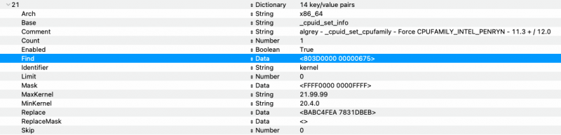 and this is my patches list now to boot from Big Sur to Monterey beta 3: Patches_BS_MR_1_2_3.plist.zip You have to add (in initial position this): Force cpuid_cores_per_package from @Shaneee PR or with old one published on insanelyMac by Algrey (with cores number -1) now without -1 for your cores number (not tested by me because i am using a different way) so core count with above patch is: 32 cores - 3970x =2 0 24 cores - 3960x = 18 16 cores - 3950x = 10 10 cores = 0A 8 cores = 08 6 cores = 06 Update: I prefer to use old patch for "Force Cupid_cores_per_package" but for someone could be fine to use it also Update:2 Patches in PR works also in clover bootloader , it was a error of mine (missing Procedure on it)1 point