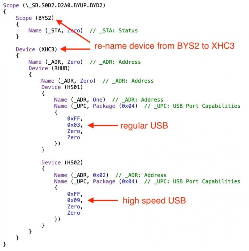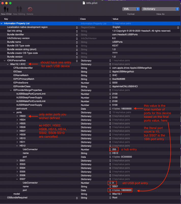 Yes, the type and kind of ports are defined by either an SSDT or a kext file, and this can be very useful. While I've used both, in my view, SSDT files are easier to edit and maintain (kext files require going into their contents and editing a relatively hidden parts within an info.plist file inside the kext's contents); furthermore, the SSDT file allows renaming at the same time. The first Spoiler below shows an SSDT excerpt and annotates how a re-name and USB types can be assigned. The 2nd Spoiler describes the steps used to locate and edit the Info.plist file for USB devices. This is only a cursory overview. Even if you have a program to create the list for you, you'll still need to know how to remove unwanted devices or re-add those previously removed. SSDT: Kext Format (much more confusing, no?; and you still cannot re-name a device as with the SSDT approach):2 points