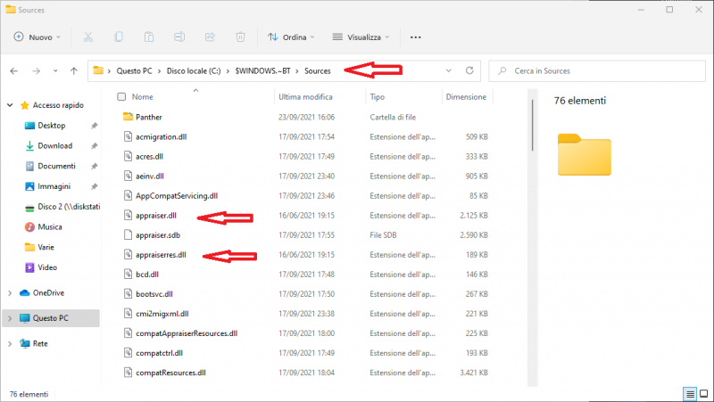 E alla fine dopo mezza giornata di sbattimento ho risolto il problema e sono riuscito ad aggiornare all'ultima DEV dopo che avevo installato dalla 22449.1000 Vi allego un sunto di tutto caso mai servisse a qualcun altro. Se vi capita di non ricevere le versioni DEV perche il programma windows insider ha bloccato questa opportunita potete sbloccarlo come suggerito da @antuneddu Qui Una volta sbloccato windows insider vedrete l'aggiornamento ma all'atto dell'installazione vi verrΓ fuori il messaggio che la macchina non Γ¨ supportata quindi dovete andare a scaricarvi la mod del registro sempre suggerita da @antuneddu Qui quindi applicate la modifica al registro eseguendo il file -Windows 11 - Bypass TPM And Secure Boot.reg poi modificate anche il tipo di CPU come suggerito da @marco.pisellonio80 Qui nel mio pc era cosi "Intel(R) Core(TM) i7 CPU Q 720 @ 1.60GHz" e ci ho messo "Intel(R) Core(TM) i5-9400F CPU @ 2.90GHz" ora viene il bello, anche cosi non superate il controllo, ma non riuscivo a capire per quale motivo, poi l'illuminazione , accade perche l'installer dell'aggiornamento riesegue, oltre agli altri controlli, anche un nuovo check adoperando le 2 famose DLL che sono di nuovo contenute nel pacchetto di aggiornamento, e quindi dovete modificare anche quelle , abilitate la visione delle cartelle nascoste e cambiate le DLL anche nella relativa cartella che vedete in foto qua sotto ed il gioco Γ¨ fatto π π Vi allego anche lo zip con le due DLL . appraiser.zip3 points