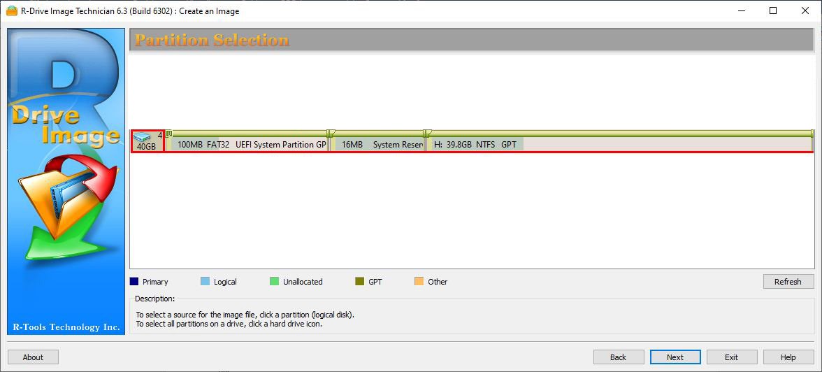 Da R-Drive Image, Creiamo un Immagine, selezioniamo, diamo un percorso e procediamo di Default: