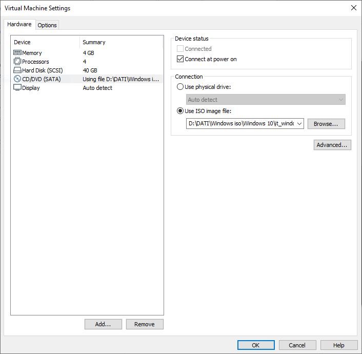Creare una macchina Virtuale, Hard Disk da 40 Gb, Importante su Singolo File, 4 Core, 4 Gb RAM, DVD e selezionare la ISO di Windows, Tutti il resto eliminatelo dalla Macchina: