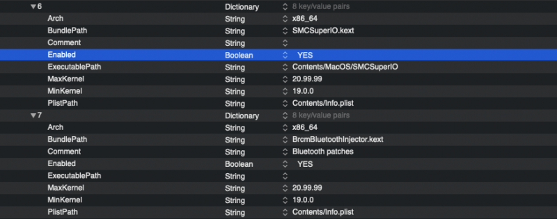 a me da sempre questo errore Kernel->Add[23] discovers BrcmBluetoothInjector.kext, but its ExecutablePath (Contents/MacOS/BrcmBluetoothInjector) or PlistPath (Contents/Info.plist) is borked! CheckKernel returns 1 error! BrcmBluetoothInjector.kext non deve avere nulla in ExecutablePath, riguarda la foto e correggilo Cosi @Perdu ti ho corretto l'ultimo errore Guardaci così almeno capisci meglio per la prossima volta 🙂 Config.plist.zip