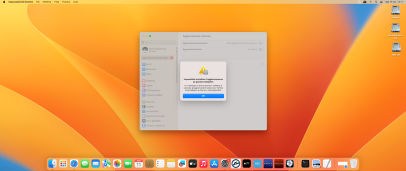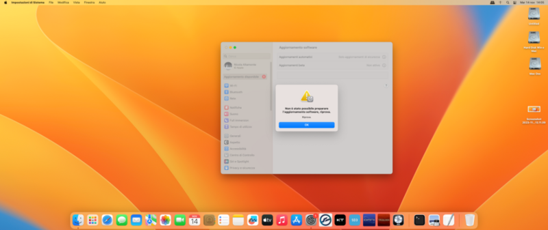 Ok, grazie, ho provato con quanto suggerito da Extreme e riesco a scaricare Sonoma, pero' dopo ho questo messaggio, ho già provato tre volte e sempre lo stesso risultato..