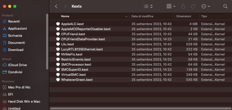 Buongiorno, scrivo non per il mio pc in firma ma quello precedente con le seguenti caratteristiche: Cpu I7 8700k, scheda madre Asrock Z370 Pro4, 32gb ram, scheda video integrata UHD630, dual boot con win10 su due dischi separati, osx Ventura Il problema è che il sistema Mac non mi permette di vedere i due monitor cosa che funziona perfettamente in win10. E' un problema di aggiornamento, kext, ecc? Ringrazio anticipatamente.. Nic