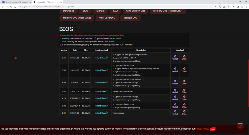 2. Buongiorno, sarebbe un problema se aggiornassi il bios della mia scheda madre? Io ora sono al 6.05 Grazie