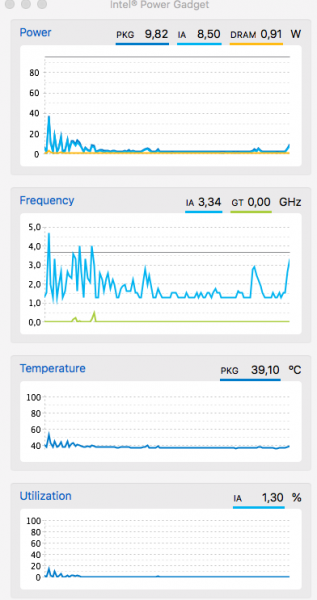 13. Ho fatto un test con Intel Power Gadget e Geekbench 4 Ecco le schermate. Tutto OK?