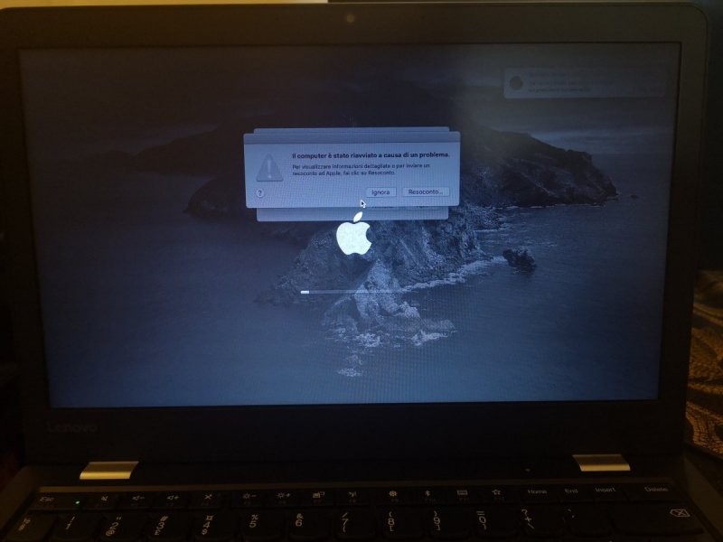 Buongiorno a tutti sono riuscito ad installare catalina su lenovo thinkpad 13 2nd generation di mio fratello ma arrivato alla schermata di login inserisco la password, una volta eseguito l'accesso rimangono le finestre sovrapposte su uno sfondo sbiadito e cliccando su qualsiasi opzione non mi si apre nulla.Vorrei completare la configurazione in modo da rendere il notebook funzionante in tutte le sue specifiche.Gentilmente posso affidarmi a voi esperti per rendere fattibile la richiesta?Allego anche una foto del problema.Grazie anticipatamente. Il portatile ha una cpu i3-7100u 2.40ghz ed una scheda video intel hd 620. EFI.zip