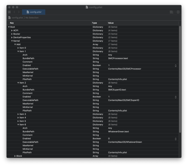 @Ramirez71 Attualmente i Kext sono ordinati in questo modo Per quanto riguarda gli SSDT purtroppo non ne so nulla, ti allego la cartella ACPI i file sono tutti attivi nella config ACPI.zip