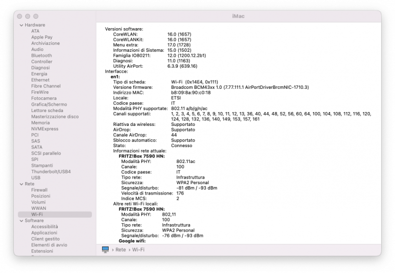 Grazie @SemanticA perdonatemi ma con le reti ho parecchie lacune (praticamente non ne so un p*ne) Escluso la banda di frequenza da 2.5 GHz su Modem (FRITZ!box 7590) quindi ho forzato la connessione solo su banda 5 GHz, risultati in mirror Direi che il problema è stato trovato e risolto, grazie mille, stavo già per rifare tutto (port mapping, ioreg, ecc..) 😅 Consigliate di lasciare disattivata la banda da 2.5 GHz o i riattivarla impostando l'hack con una mesh a 5 GHz? (se capisco come fare) 😅