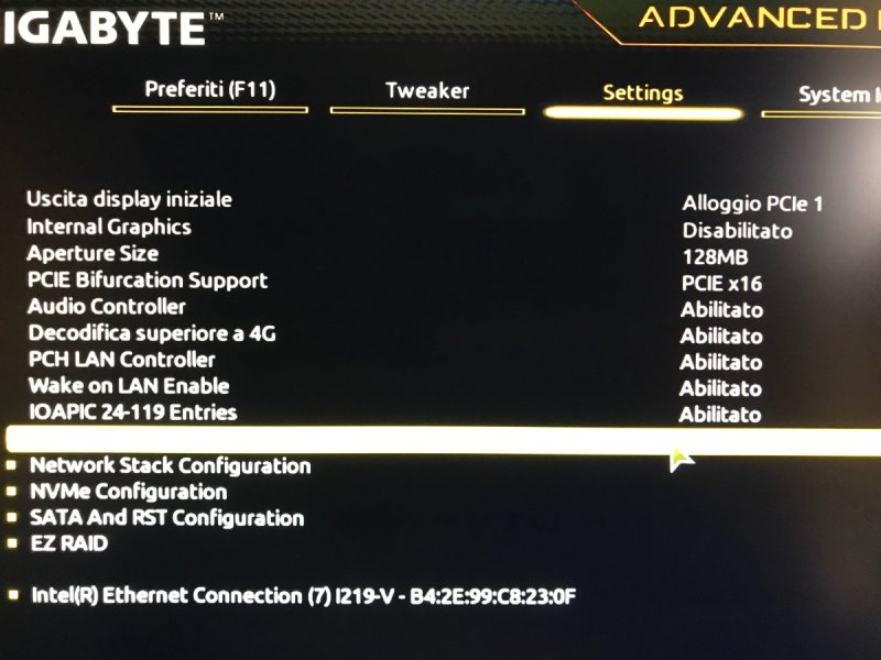 e di che? figurati! anzi grazie che tenti di capire insieme a me come risolvere il problema.. provo a farti un piccolo recap della situazione NELLE PUNTATE PRECENDENTI: - il mATX che ho in firma volevo passarlo a Opencore, la EFI clover con cui avvio attualmente (nessun problema) la trovi qui - avevo iniziato da solo, ma grazie all'aiuto di @antuneddu e @Gengik84 sono riuscito a convertire il config.plist per OC (EFI OC in allegato) - inizialmente mi dava problemi di boot e kernel panic poi risolti Attualmente il problema è il Black Screen sulla 5700xt collegata via DP - Settaggi BIOS di interesse - bot-arg testati con scarso successo - Simbios testati con scarso successo - Altri tentativi spero di essere stato il più chiaro possibile perché onestamente non riesco a capire dove sia l'errore EDIT Provato 3 DP e 1 HDMI della 5700xt senza successo EFI OC Gengik84.zip -