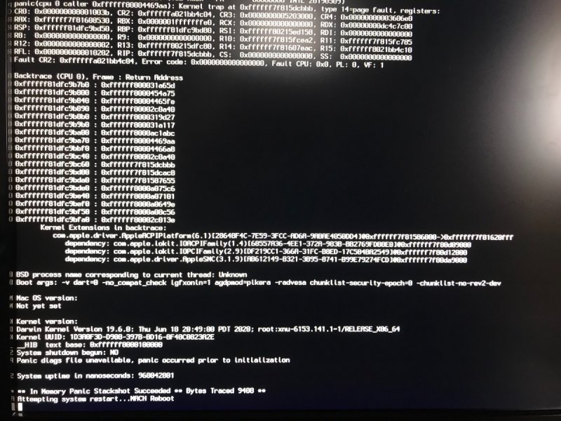 Sto utilizzando open core relase 0.6.7 @Seridan80 ho provato ad editare l'EFI come da te consigliato, in allegato per conferma nel caso mi fossi perso qualcosa (d'oh) per gli SSDT ho trovato delle prebuilt su dortania, ho inserito quelle per prova provo un boot e ti faccio sapere - EDIT Risultato KP (d'oh) - EDIT 02 Reset Nvram e provato il boot con solo questi bot-arg (-v keepsyms=1 alcid=7 shikigva=128) Risultato come sopra Efi OC Seridan80.zip -
