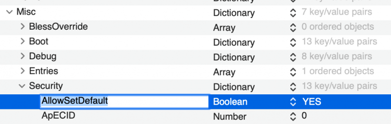 10. partiamo da pc spento accendi viene il menu di opencore? se si passa solo il config che stai usando Se parte invece windows devi per forza dare un ordine ai dischi nel bios e scegliere quello dove hai la EFI di Opencore Edit: se usi il config che avevamo prodotto qui lo hai impostato correttamente quindi, control + invio su icona che vuoi far partire per sempre dovrebbe funzionare