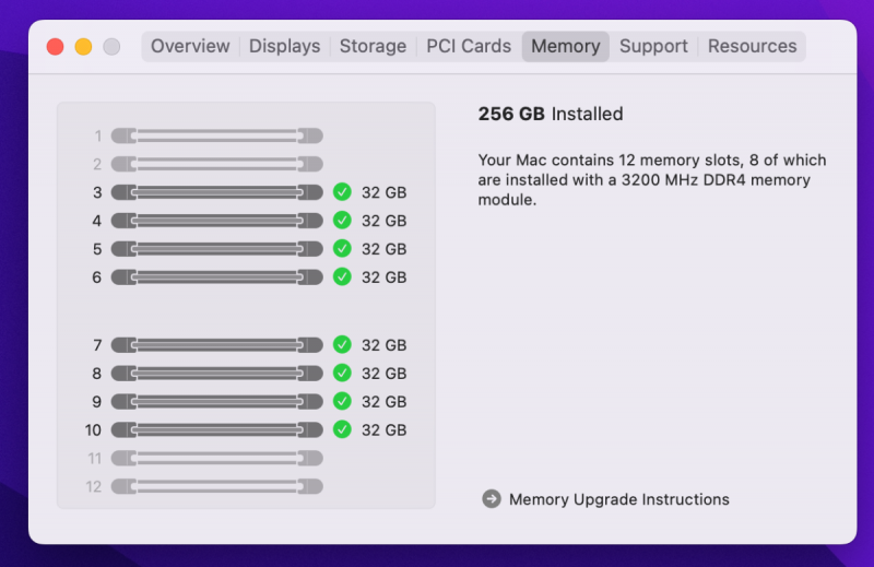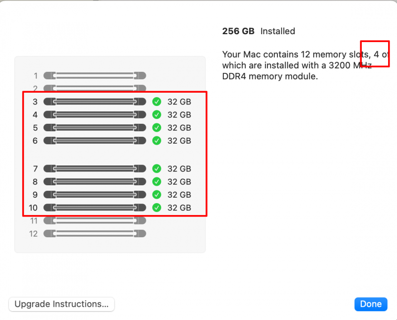 con ultimo lilu sparisce la possibilità di vedere le informazioni sulla ram (la i compare in casa di errore) con una configurazione appropriata lilu/config puoi vedere il pulsante e solo l'errore degli slot da me ad esempio dice, il tuo Mac ha 12 slot di cui 4 pieni, mentre graficamente ne mette otto pieni come in realtà e'