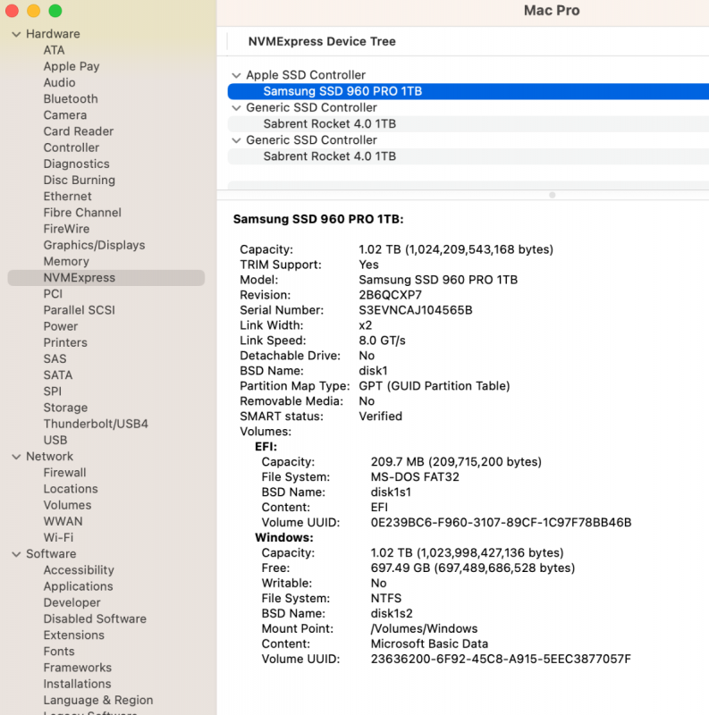 2. @ArrakisI have flashed an old firmware by Elias (I think) on our thunderbolt thread if I remeber well there is version I used @Ploddleswindows problem seems to be a MSI trx40 problem but their support does not answer I have never installed windows here from scratch (I have had an old x299 installation on my Samsung 960 pro and I always updated from it trying to install here also on a "simple" SSD is a pain I don't know how it is possible...OSX is more simple to install here 🙂 PS welcome back this is on Thunderbolt case it is always seen as apple SSD and not generic one
