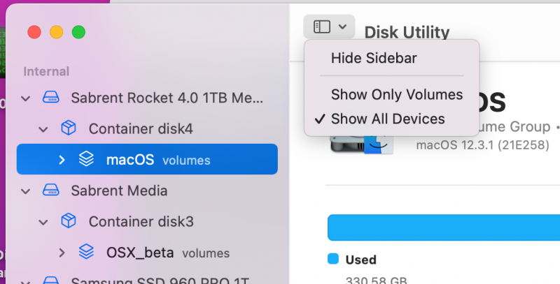 11. ciao e benvenuto da utility disco verifica se sei in mostra tutte le periferiche come da immagine nel caso prova a formattare il container o il volume