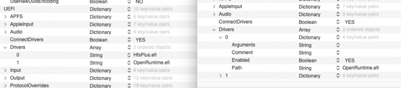 comunque qui , se e' la versione 076 di Opencore un errore grave lo hai nella sezione UEFI/drivers a destra e' come doveva essere:) Qui non ci sono Guru...ma appassionati 🙂