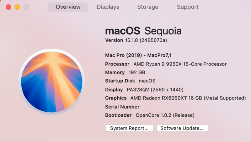 @Tambose ti e' possibile rimani con la rx570 per avere poi una migliore esperienza con i sistemi OSX recenti 1) ti manca un kext importante da Monterey in poi: AppleMCEReporterDisabler.kext 2) non stai usando le patches AMD aggiornate per Sequoia Se non riesci da te poi ti mando i link appena accendo il mio pc