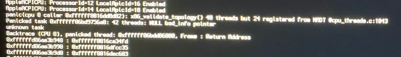 @SavageAUSadded here a patch which we do not use (Topology patch) this is one of the Problematic patch I see people try to solve in very weird ways and it is not advised to do in that way In all system tested here it is not mandatory to boot. I should do a similar test with opencore, disabling ProvideCurrentCPUInfo add two patches for vid and tsc and try without adding topology patch these three patches are included in OpenCore quirk. in clover it is not present and if topology patch I inserted here does not work could be a problem always if you like to try then post debug and hang photo if it is different EFI-2.zip
