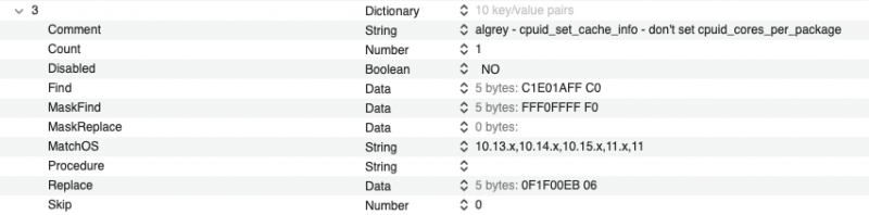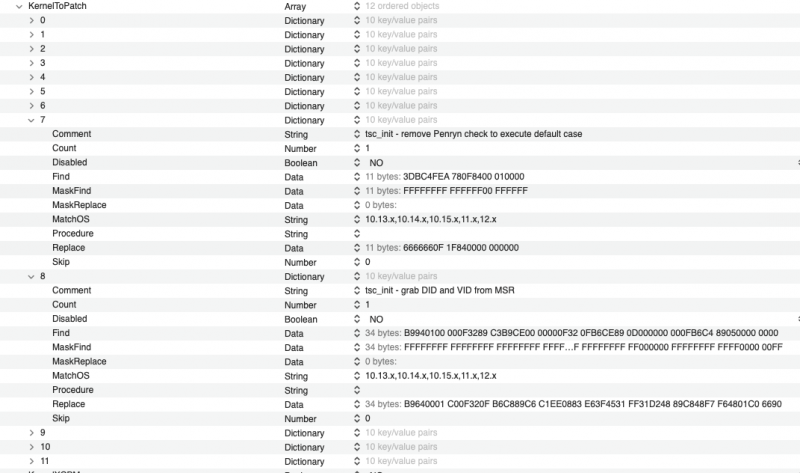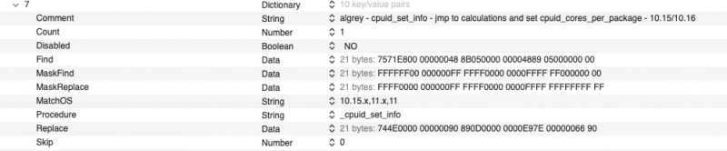 Without making any kind of controversy, let me tell you to take a look at this plist and if you want, try to adapt it to the bootloader you use and remember also patch 0 has a value (1F) for my 3970x, you must adapt to your cores cpu number. all patches used are public and available patch 0 later had some adjustments, in particular on the masks and on the count brought to 1 these adjustments are not yet published by the author, but are not necessary to make various modern systems work the patch published by algrey on insanely mac, allows you to remove several "XLNC" patches In the usual spirit that has always distinguished us, if you want to try them, if they don't work for you post a debug ... you will not believe it .. but this thread is also read by people who then solve the problems in the bootloaders ๐ @carlo_67it should work also on your platform ๐ Mario* thanks you for trying the previous solution * UPDATE 17-07-2021: