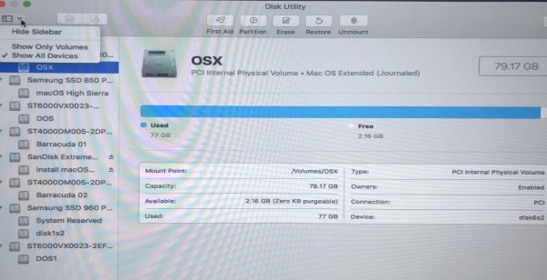 Installation Steps insert an USB pen (size 8Gb or more) run installation utility and follow on screen instructions or follow detailed guide to create an USB pen by @Gengik84[/mention] at this link: https://www.macos86.it/viewtopic.php?f=41&t=2">viewtopic.php?f=41&t=2">https://www.macos86.it/viewtopic.php?f=41&t=2 or in a short way do this steps: Choose installer and then alternate method to install Drag and drop usb pen in installer app when requested Drag and drop instal macOS data app previously downloaded from App Store Wait till process end Install clover on USB clover (any version) as pictures below: using a minimal EFI driver64UEFI installation if you want you can change in Clover/Other this included kexts: config.plist.zip [/b] install clover on Install macOS High Sierra USB pen as picture previously posted You must have selected Install for UEFI booting only and Install Clover in the ESP accordly Now we can reboot. During BIOS scan press F12 to choose boot drive Select Uefi USB pen you have created you will see clover boot loader menu disk utility.jpg Select disk utility and format disk you want use for OSX install 17E202 OSX version[/b] If you have downloaded config.plist posted here you can reboot because Nvidia web drivers is active in it ,otherwis,e you have to flag it as you can see here: DSDT.aml.zip In this way you will achieve this in Pic tab in About my Mac: ALL Kext or utilities used here are available in Downloads Section Sleep is not working by now (WIP)[/color] Have fun :) Other.zip config.plist.zip DSDT.aml.zip