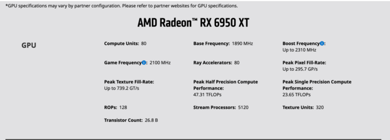 these are the compared feature 6950 xt is about 15/20% for clpck, comute units and stream processors