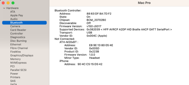 Il bt a mio parere e' IOUSBHostDevice e li dovresti metterlo come interno il valore a seconda di come hai mappato e' FF o 255 Anche ITE Device dovresti metterlo come internoed in generale anche dove vedi scritto hub se ne hai nella tua schermata