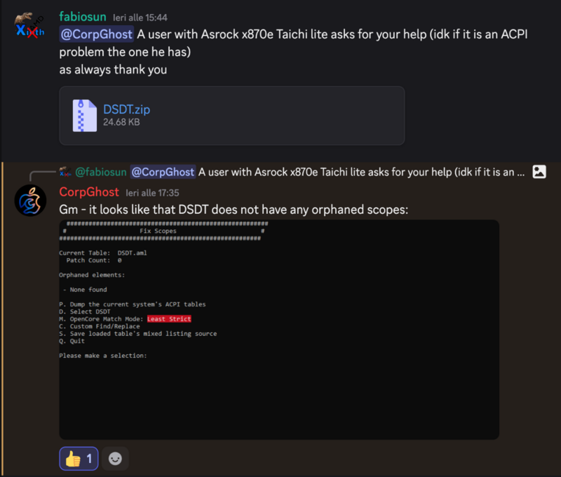 As soon as possible i will fill with a working EFI 🙂 These below are ACPI patches useful to avoid ACPI errors with bios 1203 patches_OC.plist.zip As always thanks @Corpnewt aka CorpGhost on AMD-OSX discord to do them for us 🙂 link Configuration in detail: Case ThermalTake Core X9 PSU Enermax 1700w platimax Asus ROG CrossHair x870E Hero 192 Gb Corsair Vengenage 6400 Mhz 4x48Gb 2 6950xt 16 Gb GPU ( 🙂 ) 2 KC3000 Nvme Kingston 2 Tb 2 Sabrent Rocket 4.0 1 Tb 2 SSD 4Tb each 2 HD 20 Tb each I did an initial working EFI. to support 6950xt OSX needs a spoof to 6900xt One slot needs additional SSDT bridge I did also a fast USB mapping , i have to refine it better Attached my working EFI Pay attention: Intentionally i didnt build a MMIO whitelist Area but i have used DisableVAriableWrite quirk to boot without MMIO declaration I do not advice to do the same , and you should build your proper MMIO area to whitelist System works wonderfully and the only things i can see it is not working are ASMedia USB4 and WIFI because i do not want to disassamble ASUS motherboard plate , in a future maybe i will do as last information i am using 1203 Asus Hero bios EFI.zip