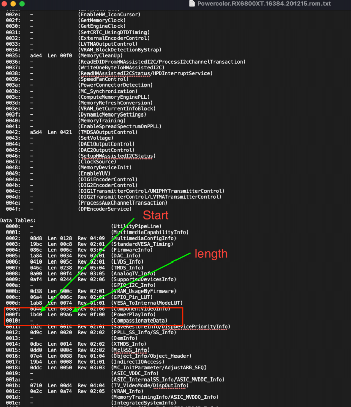 In my previous post above, I modified it today to contain a brief tutorial, shown in several Spoiler sections, on how to extract the SoftPowerPlayTable (sPPT) section from a ROM file. One step needs to use ATOMBiosReader under Windows to locate the sPPT section in the ROM file. All other steps can be done on a Mac.