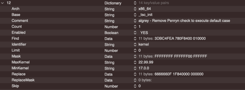 I'm not able to yet test TB on the TRX40 as I cannot manage to log into Ventura. (Update on the Z690 was ok, but not yet for the TRX40). I decided on the TRX40, instead of a fresh install, to update the Monterey drive for Ventura (I'm presently writing this from the BS drive). The update process seemed to go well, but I believe cannot complete the final boot into Ventura. From the OC menu, I do have the option to boot into Recovery, but that too fails as shown in Spoiler below, where I think many Ventura updates fail. I usually do not have Above 4G enabled, so I tried that, but had no success with or without it enabled. fabiosun, in looking at your posted EFI, you did have one extra Patch that I'd not been using, but that extra patch made no difference in booting into BS or Ventura (Spoiler below). I must get to work, so I'll try other approaches tonight. (One option is a fresh install.)