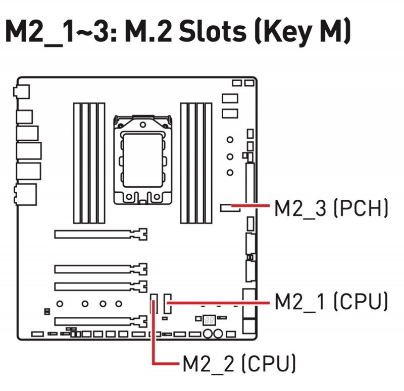 Two issues. First, I get the same error msg that @valmeida mentioned above even on Z690 system under Ventura when trying to use python. I'll give the RunMe_Downloader a try. 2nd issue: a couple of weeks ago, I updated the Big Sur drive to the latest 11.6.7 version and after it re-booted, the adjacent NVMe drive containing Ventura disappeared from the desktop. This past weekend I finally had time to investigate (I was too busy getting COVID for the 3rd time the previous week; so annoying!). The Ventura drive was located in the M2_1 (CPU) slot; Big Sur is in the M2_2 (CPU) slot and Win11 is in the M2_3 (PCH) slot, as shown below on my MSI TRX40 Creator mobo: To initially trouble-shoot, I swapped the Ventura and Big Sur drives with each other. The Ventura still did not show up on the desktop (nor was the Ventura drive visible within Disk Utility and it did not show up in BIOS). The faulty drive is a Sabrent Rocket Extreme 1TB NVMe SSD. I removed the Ventura containing NVMe drive and placed inside an external NVMe SSD enclosure in order to test with the Z690 computer and a real Mac laptop. It did not show up on the Z690 desktop (both Big Sur and Ventura), but left connected to the laptop (Big Sur), it did appear on the desktop after 5-10 minutes. At this point, the drive tested ok, but its behavior is not normal, so I'm suspicious of it being faulty. I then returned the Ventura containing drive to the MSI mobo. It still will not show in BIOS nor macOS. So I don't know if the mobo is faulty and somehow damaged the NVMe drive, or if the NVMe drive itself is the problem. The Big Sur NVMe works in either the M2_1 or the M2_2 slots, so this suggests that the mobo is working okay. Lately, I've been buying WD_Black NVMe SSDs and they seem more trustworthy and seem to have more positive comments than the Sabrent drives. Have any of you had similar problems?