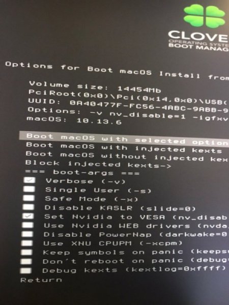 @iCanaro super urgente: faccio il boot con queste opzioni ? Sono giร su Clover e ho giร premuto barra spaziatrice su boot from Mac OS High sierra