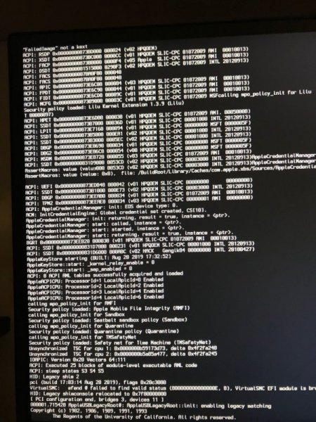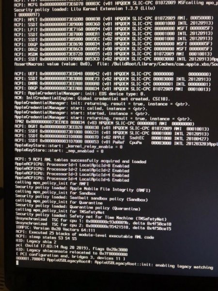 @iCanaro appena fatti 2 tentativi(senza cambiare niente all'interno della EFI da te appena passata e si è bloccato sempre in verbose ma in 2 punti diversi; allego foto. Visto che voglio essere sicuro che ci siamo intesi sulla configurazione ... il pc nasceva con scheda video dedicata che io però ho tolto per fare hack Mojave in quanto me lo avevano sconsigliato di tenerla quindi al momento HO SOLO QUELLA INTEGRATA. Il pc è collegato tramite HDMI al monitor che ti ho citato poco sopra. Grazie per il tuo prezioso aiuto speroni riuscire a risolvere, resto a disposizione tutta la serata per tentativi vari.