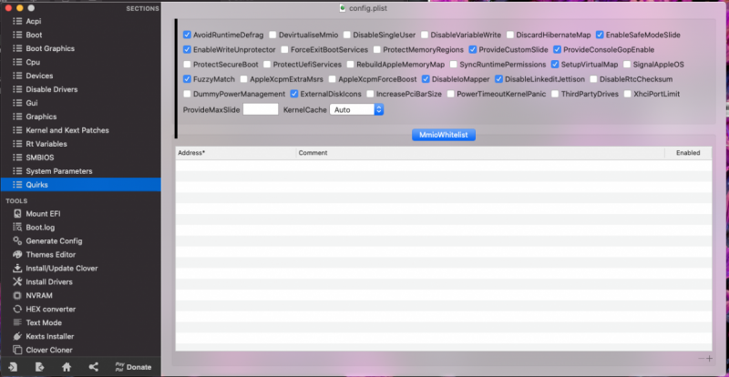 5. non ho capito: quindi dovevo provarla prima senza quirks ? 🤣 In caso poco male, ci metto un'attimo: mi basta copiare il mio config classico da CLOVER dentro CLOVERTEST e vedere che succede. @iCanaro riguardo ai plist editor io mi ci metto anche ma fammi prima capire se ho compreso a cosa mi possono servire nel mio specifico caso: mi servirebbero a modificare il mio config da usare in CLOVERTEST senza più usare Clover Configurator ?